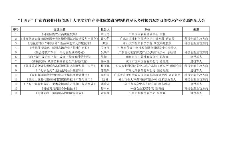 “十四五”廣東省農(nóng)業(yè)科技創(chuàng)新十大主攻方向產(chǎn)業(yè)化成果路演暨退役軍人鄉(xiāng)村振興雙新雙創(chuàng)技術(shù)產(chǎn)業(yè)資源匹配大會(huì)成功舉辦