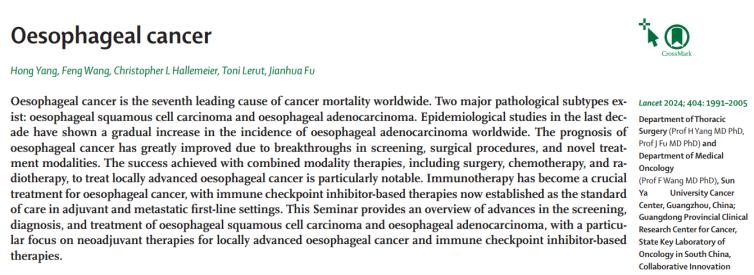 《柳葉刀》首發(fā)表中國食管癌診治進(jìn)展與規(guī)范專題綜述文章