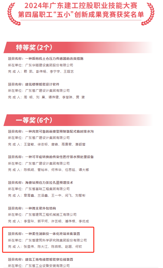 廣東建科院監(jiān)測所榮獲2024年廣東建工控股職業(yè)技能大賽一等獎