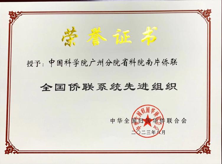 中國科學(xué)院廣州分院省科院南片僑聯(lián)榮獲“全國僑聯(lián)系統(tǒng)先進(jìn)組織”稱號