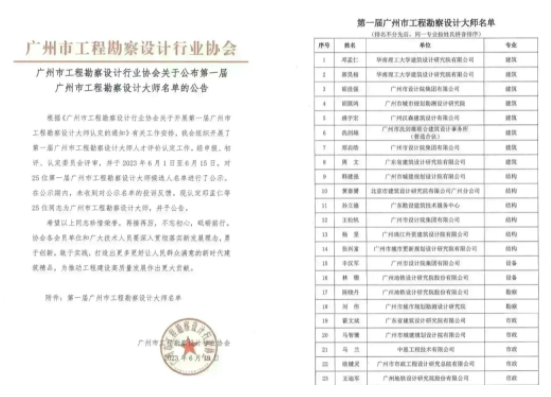 廣州城投集團2位專家入選首屆廣州市工程勘察設(shè)計大師