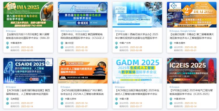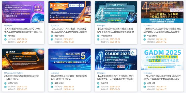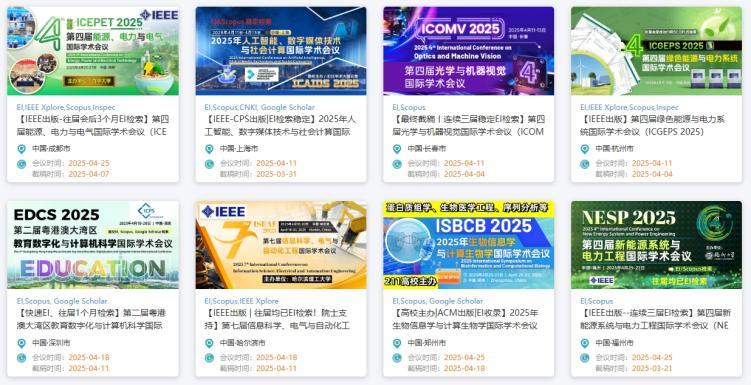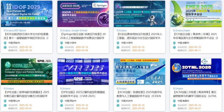 2025年4月學術(shù)會議時間表,覆蓋資源環(huán)境、人工智能、數(shù)字媒體、光學、制造材料、教育管理、思想政治、分布式、智能計算、航空航天工程、生物醫(yī)學、計算機網(wǎng)絡(luò)、機械電子、物理學等等多領(lǐng)域!