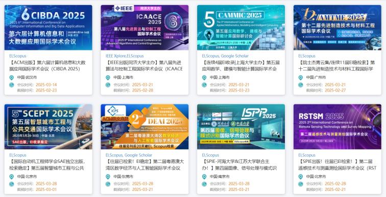2025年3月學術(shù)會議時間表,覆蓋人工智能、航天航空工程、計算機、機械制造、能源、土木建筑工程、材料科學、數(shù)學、圖像和信號處理等等多領(lǐng)域!