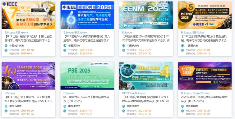 【穩(wěn)定EI會議征稿】機械、電子電氣、自動化控制、檢測技術(shù)、光學成像、激光、導(dǎo)航、制導(dǎo)與控制、電氣技術(shù)、智能制造等方向