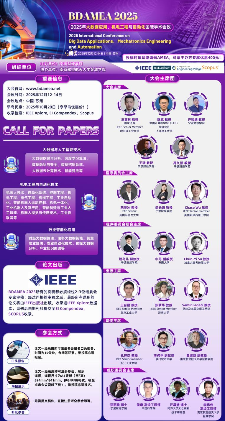 高錄用檢索快,會議主題涉及能源與環(huán)境、水利土木工程、電子信息工程、生物工程、計(jì)算機(jī)科學(xué)、地球科學(xué)、機(jī)械自動(dòng)化、材料與制造技術(shù)、經(jīng)管金融、人文社科等主流學(xué)科。