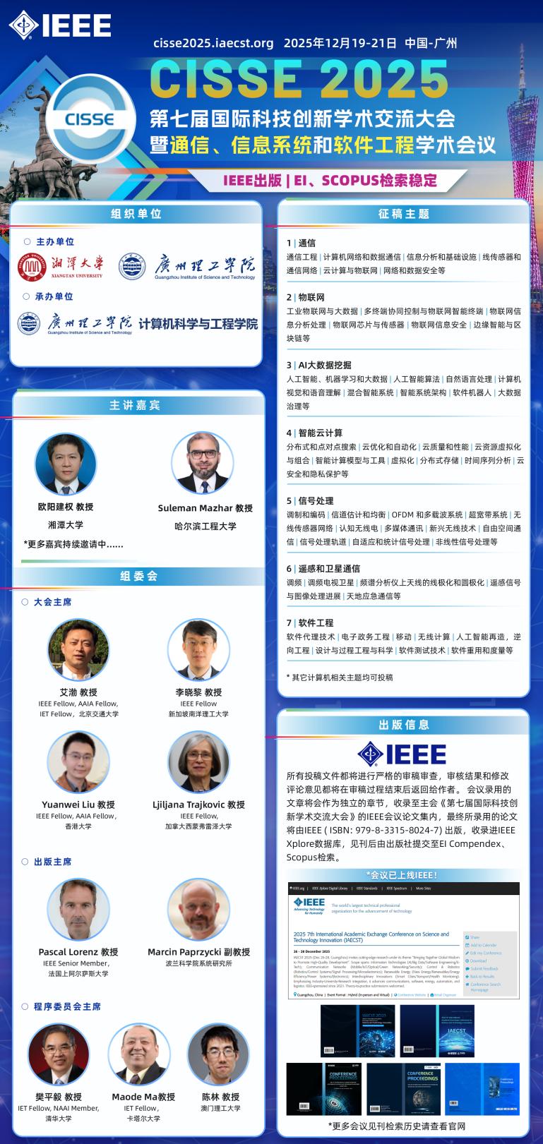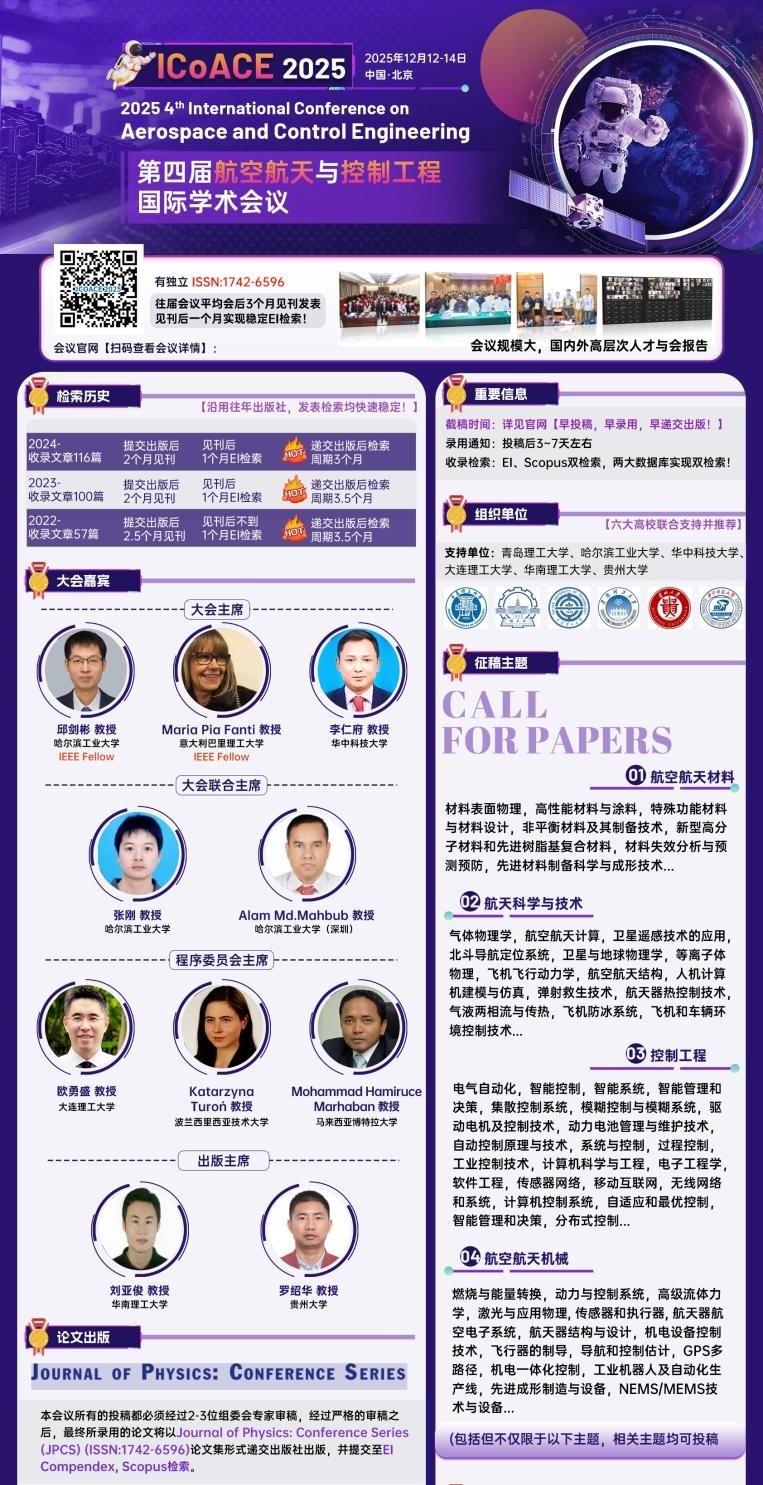 高錄用檢索快,會議主題涉及能源與環(huán)境、水利土木工程、電子信息工程、生物工程、計(jì)算機(jī)科學(xué)、地球科學(xué)、機(jī)械自動化、材料與制造技術(shù)、經(jīng)管金融、人文社科等主流學(xué)科。