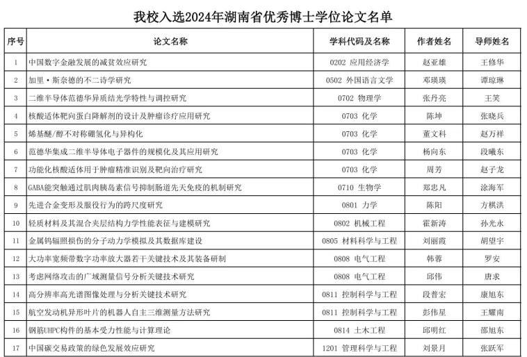 138篇!2024年湖南大學(xué)優(yōu)秀碩博論文名單公布!