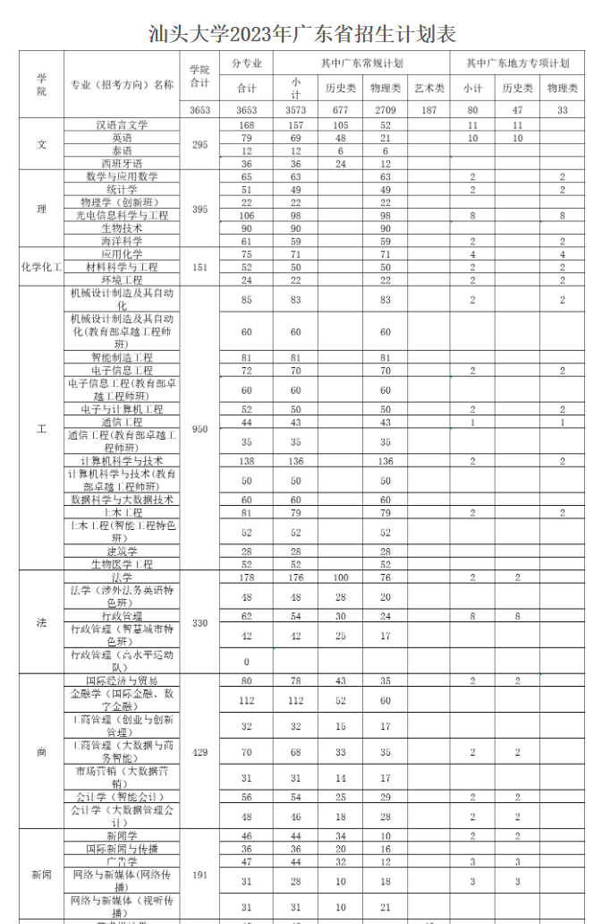 轉(zhuǎn)發(fā)!汕頭大學(xué)2023年招生計(jì)劃表