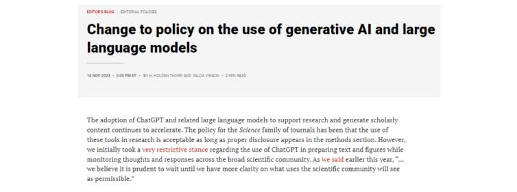 Science 及其子刊撤銷禁令,允許投稿者用 AI 寫論文!