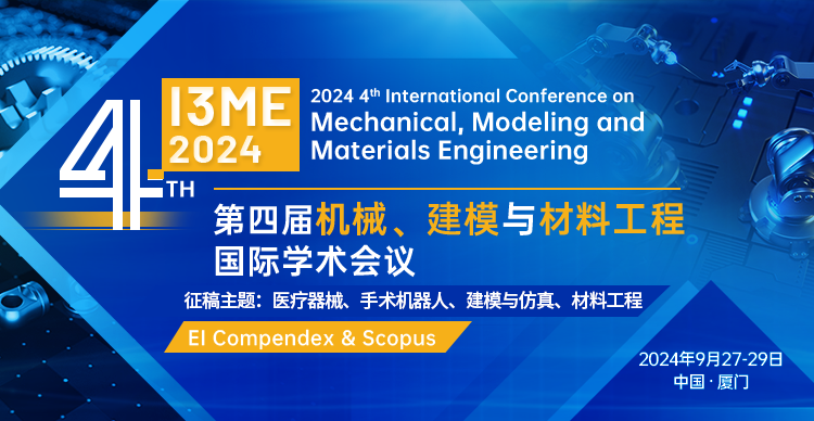 9月唯一仿真、材料EI會議| 高錄用 | 有學生優(yōu)惠-第四屆機械、建模與材料工程國際學術會議(I3ME 2024)