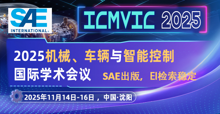 【SAE出版 | 沈陽理工大學主辦】2025機械、車輛與智能控制國際學術會議(ICMVIC 2025)