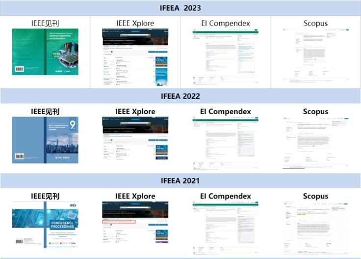 TIPS:IFEEA2023已于會(huì)后不到4個(gè)月見刊,見刊后1個(gè)月檢索;以上見刊檢索時(shí)間僅供參考,本屆IFEEA2024會(huì)議的見刊檢索時(shí)間以出版社最終實(shí)際結(jié)果為準(zhǔn)。