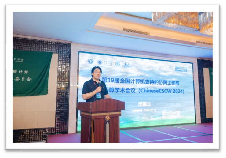 大會(huì)于7月14日上午閉幕,閉幕式由CCF協(xié)同計(jì)算專(zhuān)業(yè)委員會(huì)秘書(shū)長(zhǎng)盧暾教授主持,在閉幕式上,首先舉行了對(duì)大會(huì)2篇最佳論文、3篇最佳學(xué)生論文以及15位優(yōu)秀審稿人的頒獎(jiǎng)儀式;然后進(jìn)行了第五屆協(xié)同智能大數(shù)據(jù)競(jìng)賽頒獎(jiǎng)儀式,來(lái)自西南大學(xué)的參賽隊(duì)伍榮獲一等獎(jiǎng),來(lái)自華南師范大學(xué)和安徽大學(xué)兩支參賽隊(duì)伍榮獲二等獎(jiǎng),來(lái)自福州大學(xué)、北方工業(yè)大學(xué)、華南師范大學(xué)和國(guó)防科技大學(xué)的四支參賽隊(duì)伍榮獲三等獎(jiǎng),來(lái)自安徽大學(xué)、華南師范大學(xué)、貴州財(cái)經(jīng)大學(xué)、佛山大學(xué)的四支參賽隊(duì)伍獲得優(yōu)勝獎(jiǎng);接著,對(duì)大會(huì)贊助商、大會(huì)獨(dú)家宣傳媒體、大會(huì)承辦方與協(xié)辦方進(jìn)行了致謝;最后,會(huì)議宣布了ChineseCSCW 2025的承辦單位為廣東工業(yè)大學(xué),ChineseCSCW 2025承辦單位代表廣東工業(yè)大學(xué)李小平教授匯報(bào)了會(huì)議籌備的概況。