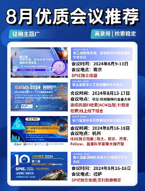 8月優(yōu)質(zhì)會(huì)議推薦 | 征稿主題廣,高錄用 | EI 穩(wěn)定檢索