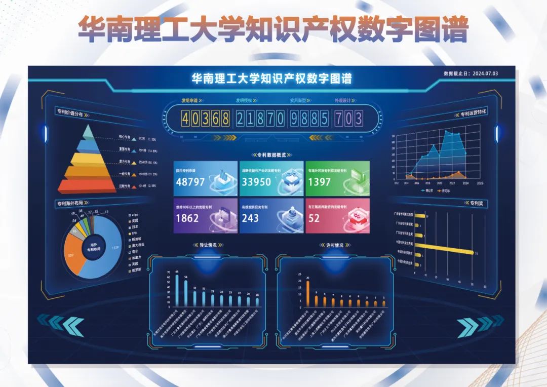華南理工大學(xué)始終將知識(shí)產(chǎn)權(quán)保護(hù)和管理工作置于重要位置。近年來(lái),學(xué)校原始創(chuàng)新和核心關(guān)鍵技術(shù)集成攻關(guān)能力穩(wěn)步提高,高水平學(xué)術(shù)成果持續(xù)涌現(xiàn),知識(shí)產(chǎn)權(quán)工作穩(wěn)居全國(guó)高校前列。學(xué)校獲評(píng)首批“國(guó)家知識(shí)產(chǎn)權(quán)示范高校”,首批“高等學(xué)??萍汲晒D(zhuǎn)化和技術(shù)轉(zhuǎn)移基地”。發(fā)明專利申請(qǐng)公開(kāi)量、發(fā)明專利授權(quán)量、有效發(fā)明專利擁有量穩(wěn)居全國(guó)高校前列,2009年以來(lái)以第一專利權(quán)人獲中國(guó)專利獎(jiǎng)數(shù)量50項(xiàng),排名全國(guó)高校第一。2023年中國(guó)專利獎(jiǎng)11項(xiàng),居全國(guó)高校首位。