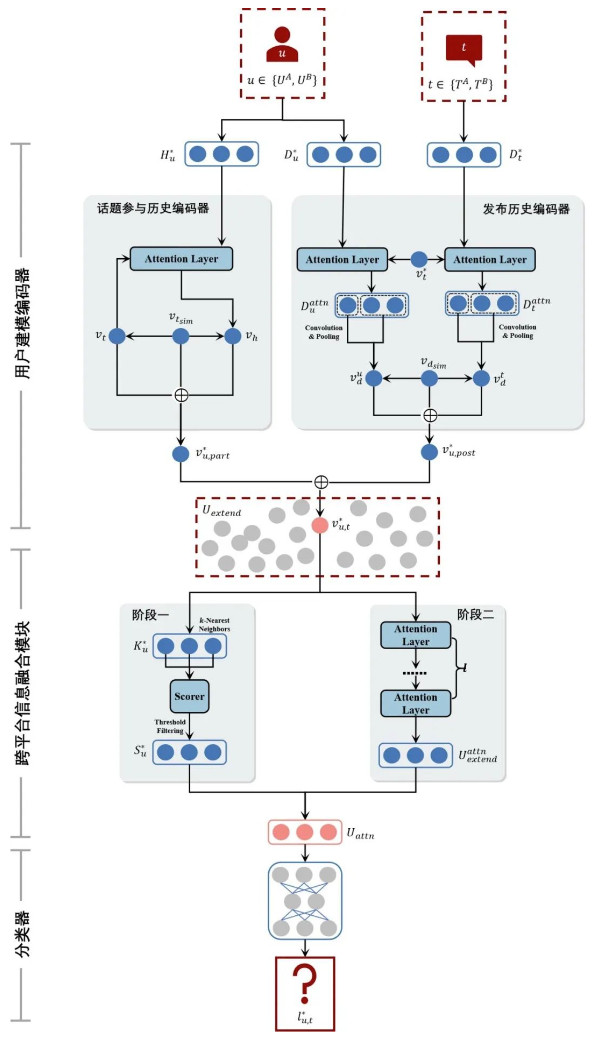 近期,實驗室碩士畢業(yè)生周淇在讀期間作為第一作者的論文“Exploring Cross-site User Modeling Without Cross-site User Identity Linkage: A Case Study of Content Preference Prediction”被期刊ACM Transaction on Information System (ACM TOIS)錄用。該文章提出了一種不進行跨平臺用戶身份鏈接的跨平臺用戶建模方法,通過借鑒隱私保護推薦系統(tǒng)研究的核心思想,將社交媒體賬戶組織成特征組,隱藏跨平臺的身份鏈接關(guān)系。通過啟發(fā)式搜索,探究了構(gòu)建特征組的構(gòu)建方法,并在此基礎(chǔ)上構(gòu)建了跨平臺用戶建模模型,該模型利用節(jié)點間的顯式關(guān)系、隱式關(guān)系構(gòu)建特征組,能有效地利用跨平臺信息對用戶進行精確、全面的建模。在真實數(shù)據(jù)集上的實驗表明,該方法在部分指標方面優(yōu)于現(xiàn)有的使用跨平臺用戶身份鏈接的跨平臺用戶建模方法。