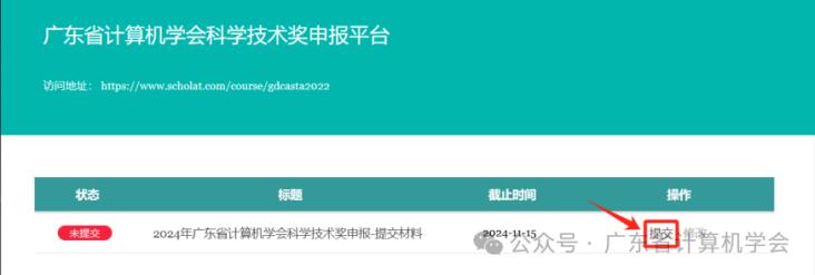 自行注冊(cè)“學(xué)者網(wǎng)”(www.sibylla19999.cn),使用瀏覽器進(jìn)入學(xué)者網(wǎng)“廣東省計(jì)算機(jī)學(xué)會(huì)科學(xué)技術(shù)獎(jiǎng)申報(bào)平臺(tái)”(http://www.sibylla19999.cn/course/gdcasta2022),輸入申請(qǐng)密碼“gdkjj”申請(qǐng)加入,在后臺(tái)提交頁(yè)面點(diǎn)擊“提交”按鈕上傳申報(bào)材料,完成申報(bào)。紙質(zhì)《申報(bào)書》蓋章版一份并快遞至學(xué)會(huì)秘書處。