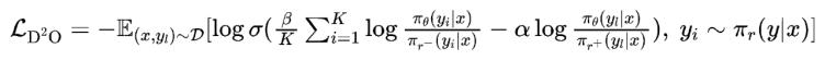 DPO成正負樣本對優(yōu)化的形式很好地避免了這個問題,然而這種從實例級別優(yōu)化方式往往容易收到標注數(shù)據(jù)中噪聲的影響。因此,本文首先引入了可控文本生成中的分布控制(Generation with Distributional Control,GDC)問題,它旨在從分布的角度控制模型的輸出,如:要求模型輸出內(nèi)容中50%的內(nèi)容涉及女性?;诖?,我們定義了分布級別的偏好建模,并且推導(dǎo)出其建模出來的最優(yōu)獎勵函數(shù)和DPO中的是完全等價的,進而可以設(shè)計出以下的D2O損失函數(shù):
