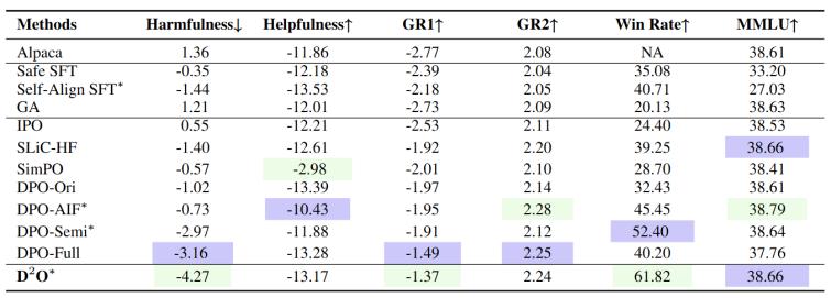 本工作提出了使用人類標注的負面樣本來實現(xiàn)對齊的任務(wù),并據(jù)此導(dǎo)出了分布級偏好優(yōu)化的損失函數(shù)D2O,有效地減少了有害性,同時保持了有用性。實驗結(jié)果表明,D2O在減少有害性、保持有用性、提高訓(xùn)練穩(wěn)定性和加快收斂速度方面均優(yōu)于其他基線方法。未來的工作將探索將D2O方法擴展到顯式獎勵建模和RLHF,并進一步減少大語言模型的對齊稅。
