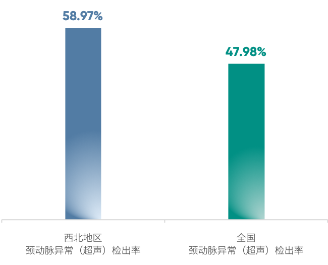 頸動(dòng)脈異常是腦卒中的另一風(fēng)險(xiǎn)因素,可以導(dǎo)致腦部供給不足,引發(fā)腦梗。綠皮書顯示,頸動(dòng)脈異常檢出率為47.98%,并呈現(xiàn)出隨年齡增加而升高的趨勢(shì),西北地區(qū)頸動(dòng)脈異常檢出率出現(xiàn)“走高”,達(dá)到了58.97%,需要格外關(guān)注與警惕。