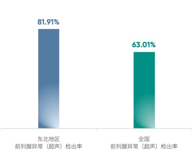 此外,超過八成的東北地區(qū)男性銀行及保險(xiǎn)高凈值客戶正在面臨前“腺”危機(jī)。綠皮書發(fā)現(xiàn),男性銀行及保險(xiǎn)高凈值客戶的前列腺異??傮w檢出率達(dá)到了63.01%,并呈現(xiàn)出隨年齡增加而增長(zhǎng)的趨勢(shì),而東北地區(qū)的前列腺異常檢出率竟達(dá)到了81.91%,需要引起重視。在體檢中發(fā)現(xiàn)前列腺異常,少久坐、少熬夜、多喝水、多排尿,定期體檢,讓“男”言之隱不再難。