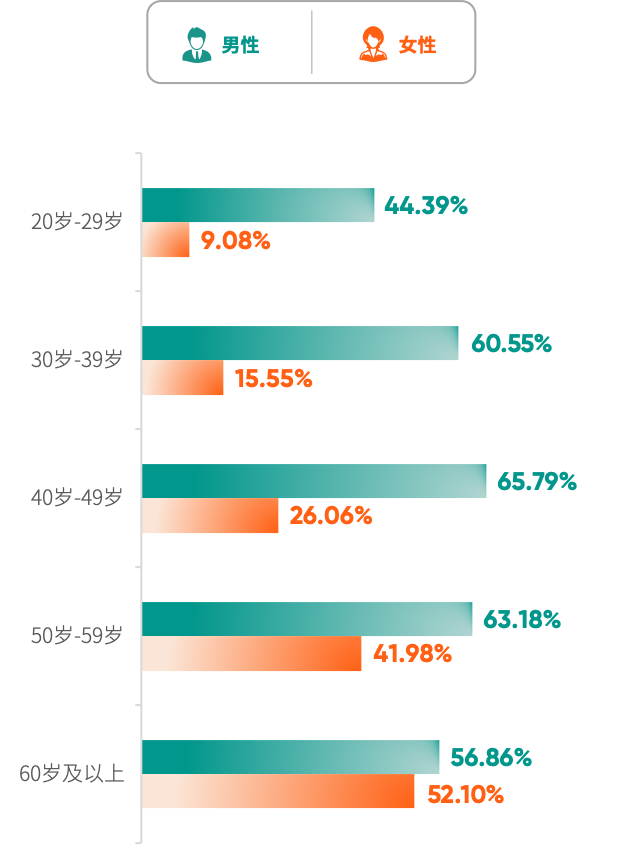 甲狀腺也被稱為“蝴蝶”腺體,因其形狀得名,它雖小,卻承載著巨大的能量,是人體內(nèi)最大的內(nèi)分泌腺體,維持著正常的新陳代謝和生長(zhǎng)發(fā)育。綠皮書顯示,甲狀腺結(jié)節(jié)檢出率達(dá)到了65.11%,成為女性覆蓋最廣泛的健康問題,相當(dāng)于在女性銀行及保險(xiǎn)高凈值客戶中,10只“小蝴蝶”有6個(gè)在“受傷”。此外,各個(gè)年齡段的女性檢出率均高于男性,從20歲開始,檢出率就超過了47%。