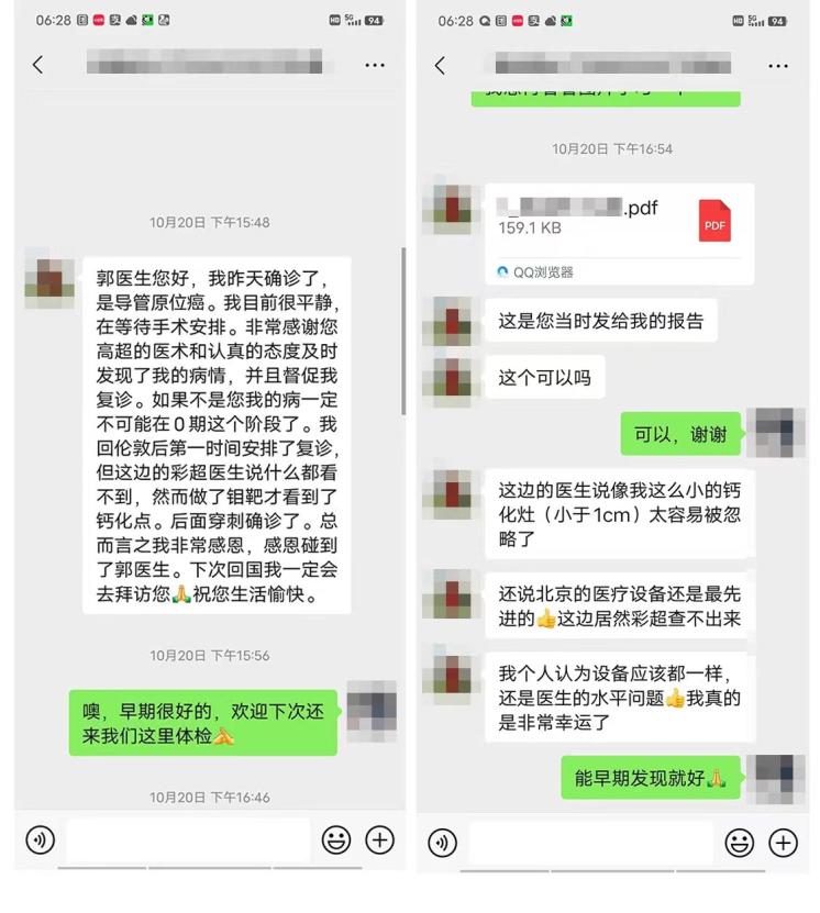 “如果不是郭醫(yī)生,我的病一定不可能在0期這個階段(被確診),總而言之我非常感恩,感恩碰到了郭醫(yī)生。”王女士表示。