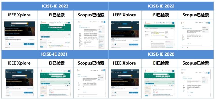 1.ICISE-IE2023, ICISE-IE2022, ICISE-IE2021, ICISE-IE2020均已完成EI, SCOPUS, IEEE-Xpolre檢索