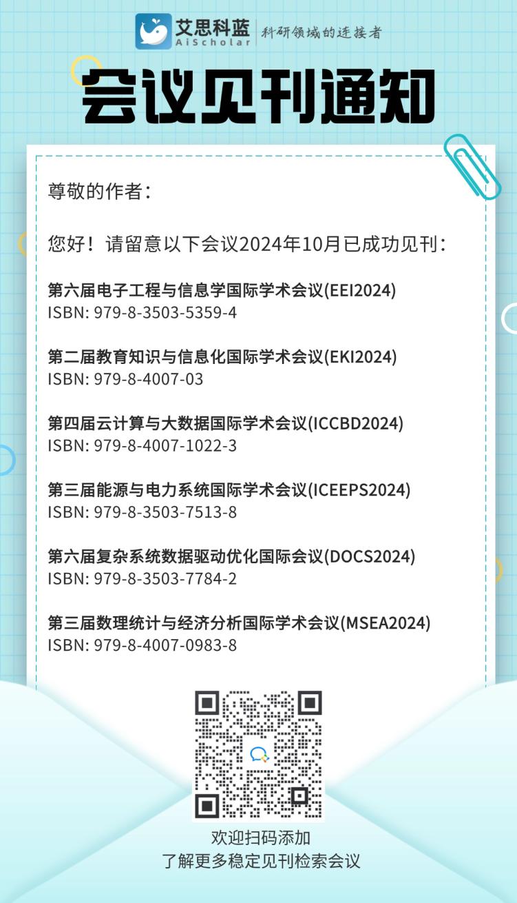 2024年10月已成功在Journal of Physics: Conference Series (JPCS) (ISSN:1742-6596) 見(jiàn)刊!