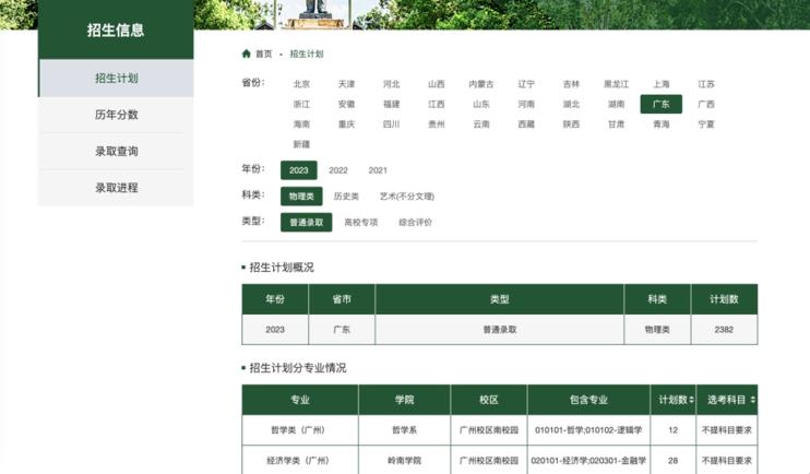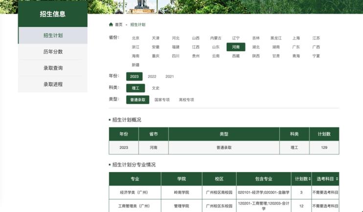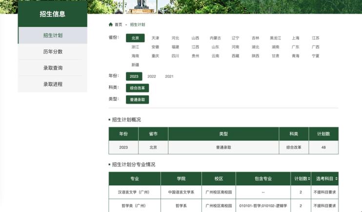 2、在中部導(dǎo)航欄點(diǎn)擊“招生計(jì)劃”