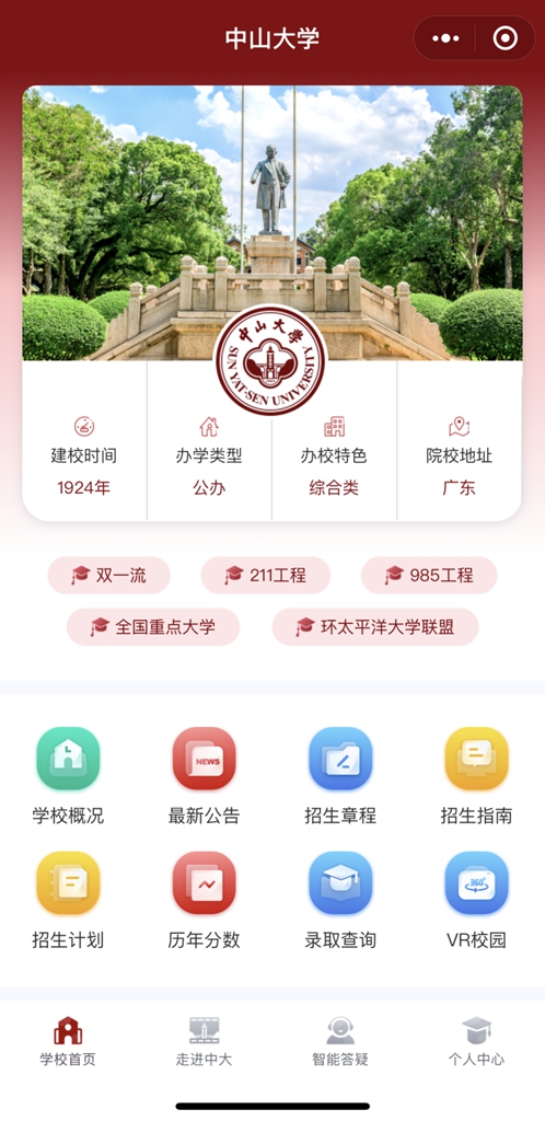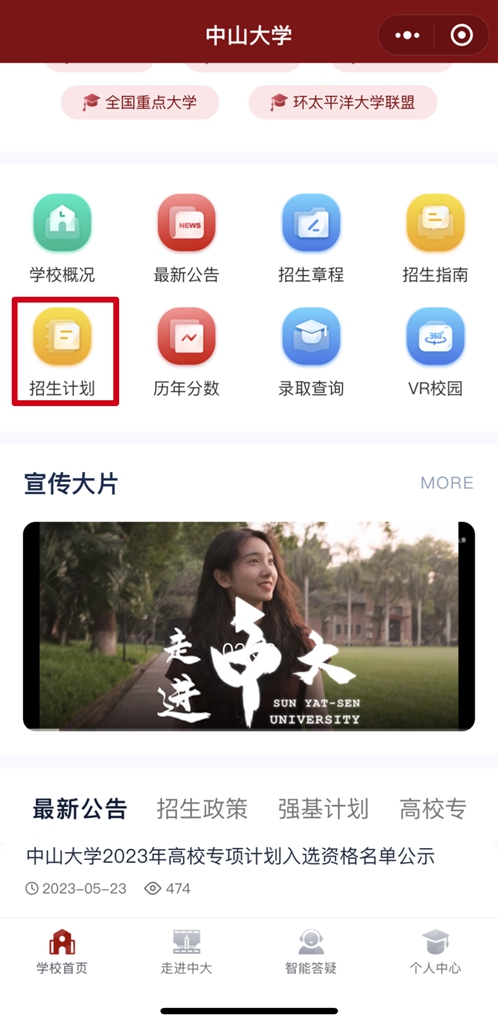 1、進(jìn)入“中大招生”小程序首頁(yè)
