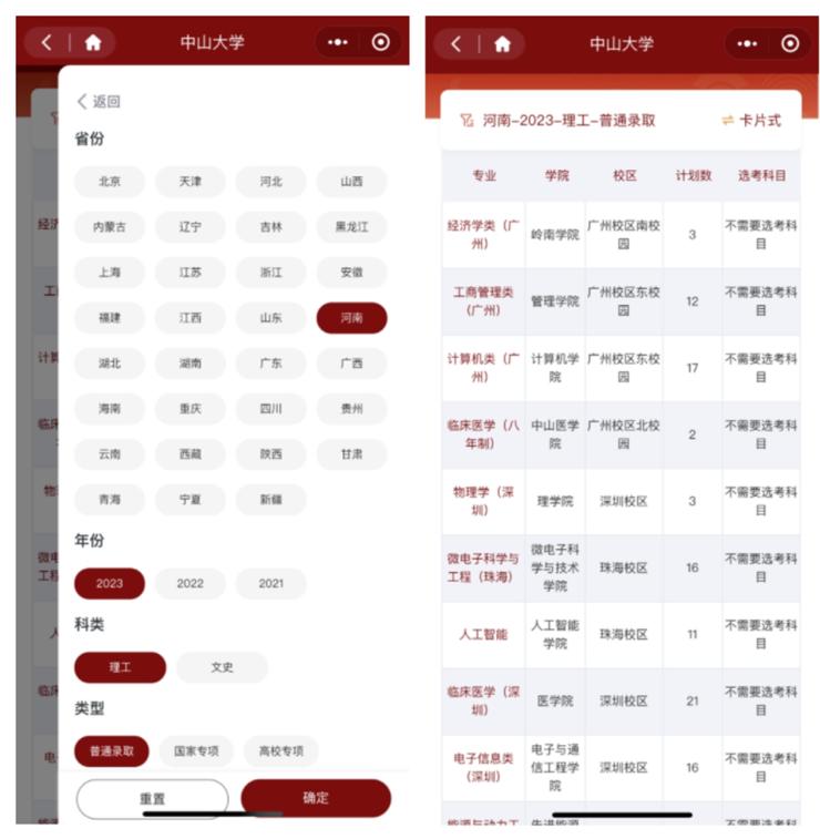想了解中大在各省份的投檔線(xiàn)、各專(zhuān)業(yè)的錄取分?jǐn)?shù)線(xiàn),可登錄“中山大學(xué)本科招生網(wǎng)”或搜索“中大招生”微信小程序,參考近三年的分?jǐn)?shù)線(xiàn)和排位。