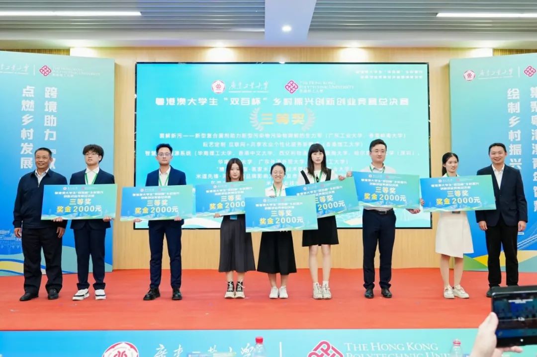 灣區(qū)時(shí)訊 12月8日,由省教育廳指導(dǎo)、廣東工業(yè)大學(xué)和香港理工大學(xué)首次跨境聯(lián)合主辦的粵港澳大學(xué)生“雙百杯”鄉(xiāng)村振興創(chuàng)新創(chuàng)業(yè)競(jìng)賽總決賽暨頒獎(jiǎng)儀式在廣工大學(xué)城校區(qū)國(guó)家級(jí)創(chuàng)新創(chuàng)業(yè)教育實(shí)踐基地-工大創(chuàng)谷舉行。來(lái)自粵港澳三地33所高校49支團(tuán)隊(duì)從108所高校623支初賽隊(duì)伍脫穎而出,近200名學(xué)生匯聚廣工大學(xué)城校區(qū)參加總決賽,用科研成果、調(diào)研報(bào)告、規(guī)劃方案為鄉(xiāng)村振興事業(yè)建言獻(xiàn)策、貢獻(xiàn)智慧。