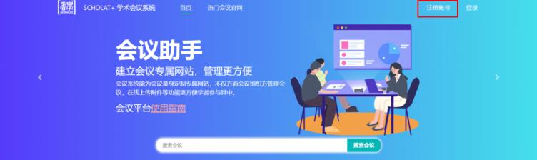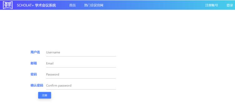 1.訪問平臺(tái)網(wǎng)址:https://conf.scholat.com/home,在頂部菜單欄中點(diǎn)擊【注冊(cè)賬號(hào)】。