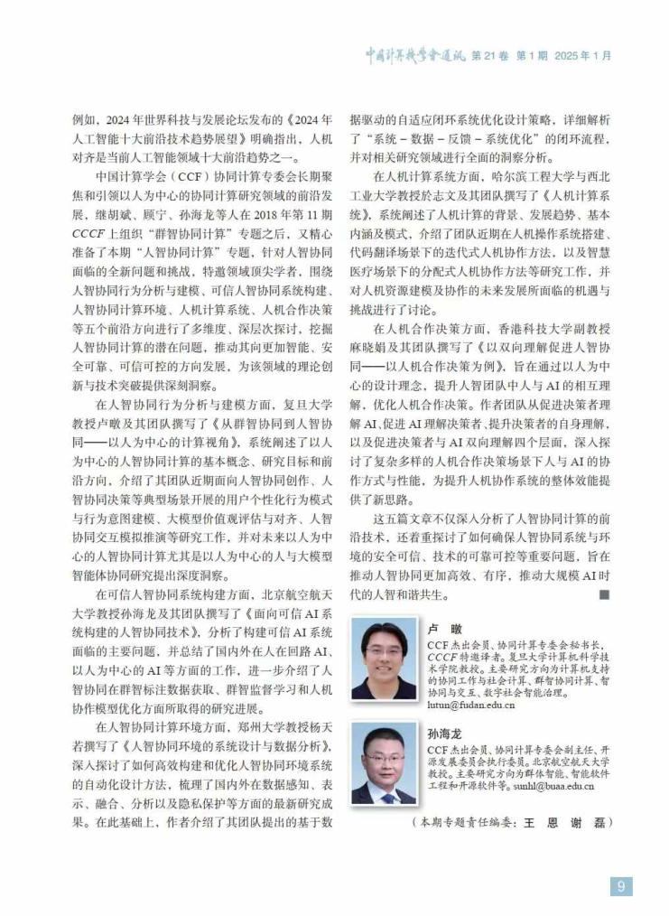 中國計算機學(xué)會通訊(CCCF)2025年第1期“人智協(xié)同計算”:
