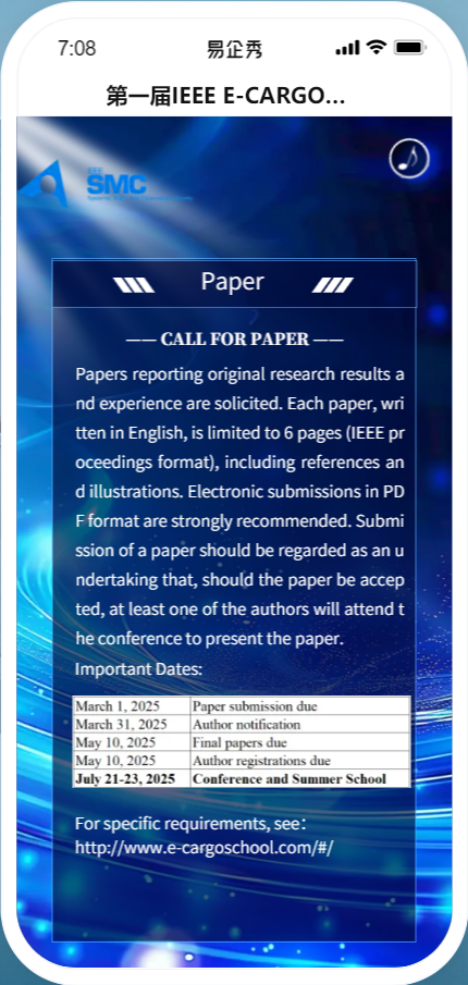第一屆IEEE E-CARGO及其應(yīng)用國際研討會將于2025年7月21日至7月23日舉行,
