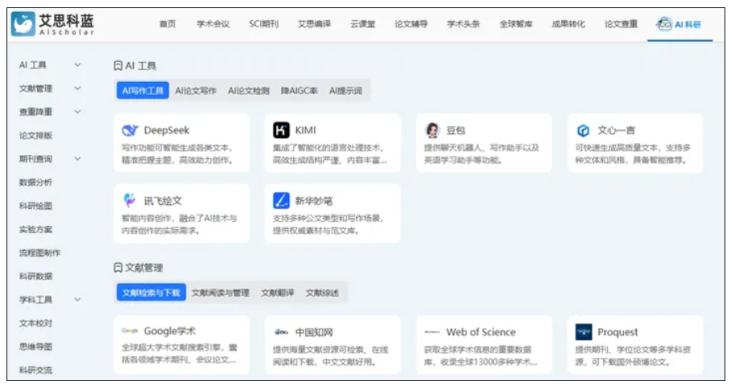 AI科研工作臺(tái)已全面對接艾思科藍(lán)官網(wǎng)學(xué)術(shù)工具導(dǎo)航(www.ais.cn/tools/navigate),為科研人員提供一站式學(xué)術(shù)工具解決方案。