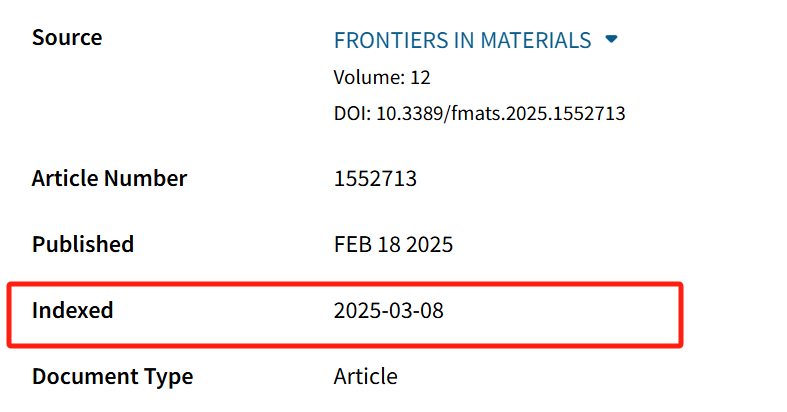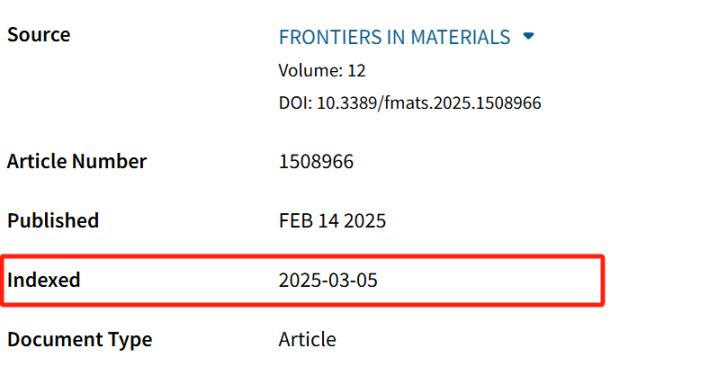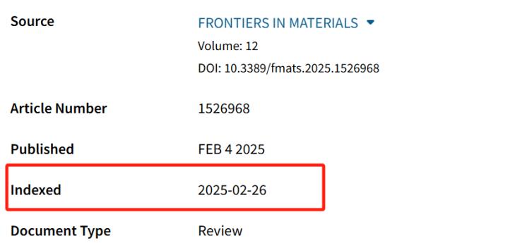 《Frontiers in Materials》目前已被SCIE、Scopus等國(guó)際數(shù)據(jù)庫(kù)收錄。其在MATERIALS SCIENCE, MULTIDISCIPLINARY學(xué)科均位列SCIE的Q3區(qū)。