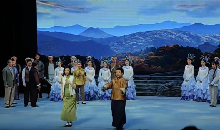 配角也栩栩如生、各具特色。傅葆琛、馮銳、陳志潛等平教會(huì)同仁,他們各自代表著無數(shù)平民教育運(yùn)動(dòng)的參與者和奉獻(xiàn)者。傅葆琛的沉穩(wěn)、馮銳的執(zhí)著、陳志潛的醫(yī)者仁心,相互映襯,展現(xiàn)出知識(shí)分子為平民教育事業(yè)共同奮斗的精神風(fēng)貌,共同構(gòu)成知識(shí)分子的精神圖譜。許雅麗作為晏陽初的妻子,她溫柔堅(jiān)韌,不僅在生活上給予晏陽初支持,更在理想上與他志同道合,她的唱段“同理想同抱負(fù)生死相依,一條路一顆心雙飛蝴蝶”,既是愛情宣言,也是志業(yè)共鳴,展現(xiàn)了夫妻間深厚的感情和對(duì)平民教育事業(yè)的共同追求。王公遜與周長(zhǎng)河則形成鮮明對(duì)比,王公遜從自私自利的剝削鄉(xiāng)紳轉(zhuǎn)變?yōu)榭谷樟沂?,周長(zhǎng)河從文盲農(nóng)民成長(zhǎng)為識(shí)字新民,他們的轉(zhuǎn)變過程生動(dòng)地體現(xiàn)了晏陽初“除文盲,做新民”教育理念的實(shí)踐成果。
