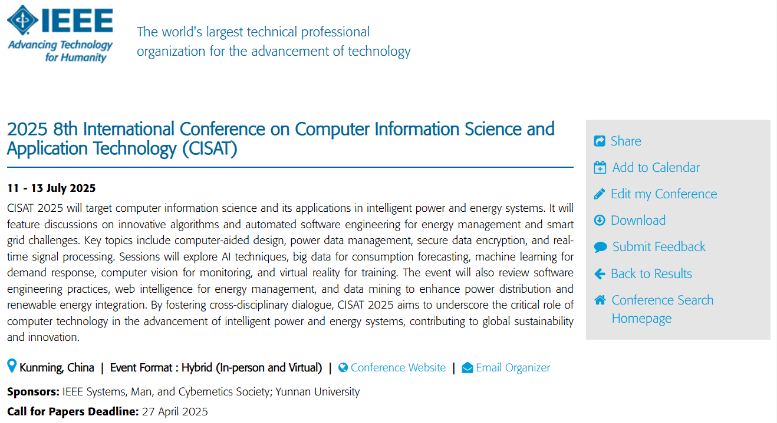 第八屆計算機信息科學(xué)與應(yīng)用技術(shù)國際學(xué)術(shù)會議(CISAT 2025)