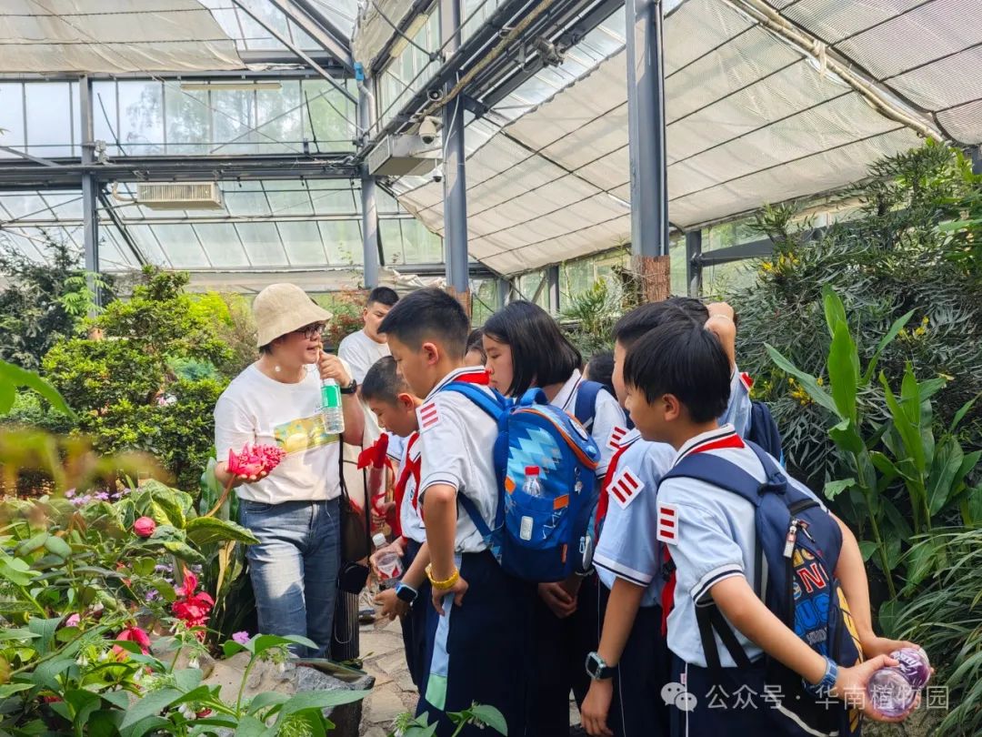學(xué)生們在園藝師的指導(dǎo)下學(xué)習(xí)栽培技巧,感受生命成長的喜悅,進(jìn)一步理解了生物多樣性保護(hù)的意義。在科普師的帶領(lǐng)下參觀了華南植物園溫室群,孩子們近距離觀察了熱帶雨林植物、沙漠多肉等特色物種,了解了不同生態(tài)環(huán)境下植物的適應(yīng)機(jī)制,上了一堂沉浸式的“自然科普課”。