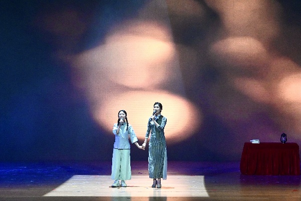 朗誦《大江頌》以“大江東去,浪淘盡,千古風(fēng)流人物”的豪邁吟誦開篇,誦讀者通過抑揚(yáng)頓挫的聲調(diào)變化,傳遞出中華民族母親河長(zhǎng)江的歷史厚重感與新時(shí)代生態(tài)保護(hù)的使命擔(dān)當(dāng);改編自蕭紅同名小說的情景朗誦《呼蘭河傳》,以青磚灰瓦的舞臺(tái)布景勾勒出東北小城的滄桑輪廓,通過舞臺(tái)視覺與文學(xué)氛圍的融合,展現(xiàn)蕭紅筆下的歲月蒼涼。