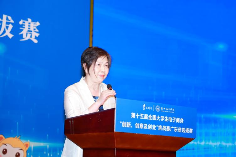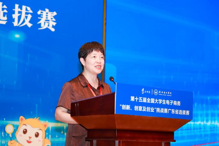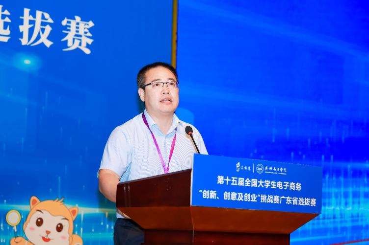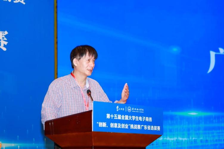 第十五屆廣東省三創(chuàng)賽競(jìng)賽組織委員會(huì)主任、廣東省本科高校電子商務(wù)類專業(yè)教學(xué)指導(dǎo)委員會(huì)主任委員、華南師范大學(xué)鄧順國(guó)教授致辭。他指出,本次廣東賽區(qū)的賽事與往屆相比有了很大的進(jìn)步,也有了很多新的特點(diǎn),科技含量更高,實(shí)用性更強(qiáng)。他表示,本次廣東賽選拔賽將有利于推動(dòng)廣東省高校電子商務(wù)和跨境電子商務(wù)專業(yè)的建設(shè),以賽促教、以賽促學(xué),助力學(xué)校教育事業(yè)高質(zhì)量發(fā)展,對(duì)各高校培養(yǎng)符合粵港澳大灣區(qū)社會(huì)需求的電商人才起到積極的作用。
