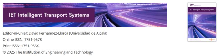 IET Intelligent Transport Systems [SCIE; IF 2.3; JCR Q2] ??喝斯ぶ悄苤С值膹椥耘c智能多模式運(yùn)輸發(fā)展 截稿時(shí)間:2025/8/31 征稿方向: