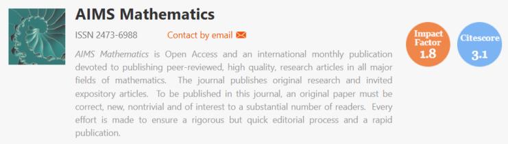 AIMS Mathematics [SCIE; IF 1.8; JCR Q1] ??喝斯ぶ悄軘?shù)學(xué)方法 截稿時(shí)間:2025/10/31 征稿方向:
