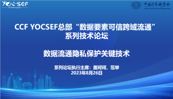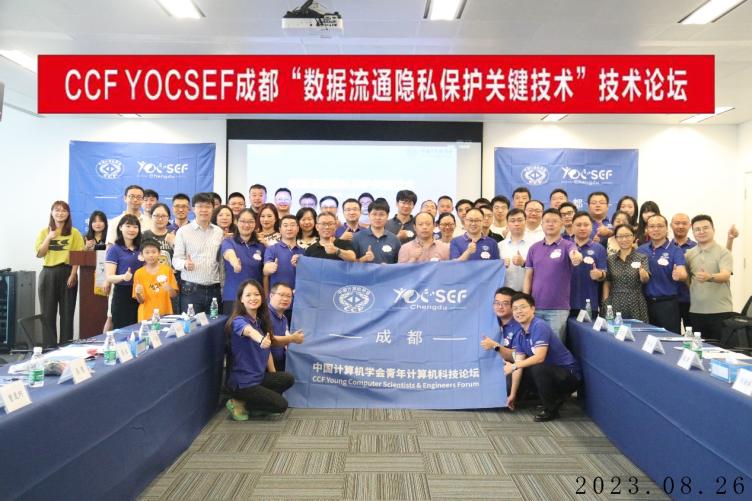 灣區(qū)時(shí)訊 8月26日上午,CCF YOCSEF成都“數(shù)據(jù)流通隱私保護(hù)關(guān)鍵技術(shù)”論壇在成都IFS國(guó)際金融中心2號(hào)辦公樓43樓百度公司會(huì)議室順利舉辦。論壇由中國(guó)計(jì)算機(jī)學(xué)會(huì)主辦,CCF YOCSEF成都學(xué)術(shù)委員會(huì)、百度飛槳協(xié)辦。論壇由YOCSEF成都AC委員張曉均(西南石油大學(xué))和楊彥兵(四川大學(xué))擔(dān)任論壇執(zhí)行主席,YOCSEF成都AC委員李海(愛奇藝)和劉昶(成都大學(xué))擔(dān)任線上主席。來自西安電子科技大學(xué)、四川大學(xué)、電子科技大學(xué)、西南交通大學(xué)、西南財(cái)經(jīng)大學(xué)、青島大學(xué)、西南石油大學(xué)、成都理工大學(xué)、四川師范大學(xué)、西南民族大學(xué)、西華大學(xué)、成都大學(xué)等省內(nèi)外高校研究學(xué)者,還有來自四川大學(xué)華西醫(yī)院、四川省人民醫(yī)院、四川省公安廳、中電科30所、電科網(wǎng)安、中國(guó)國(guó)航、四川久遠(yuǎn)銀海軟件股份有限公司、雅安數(shù)字經(jīng)濟(jì)運(yùn)營(yíng)有限公司等單位的行業(yè)專家,以及來自CCF YOCSEF總部、西安、鄭州、青島、重慶、成都等論壇的AC委員們共計(jì)50余人參加了本次論壇。