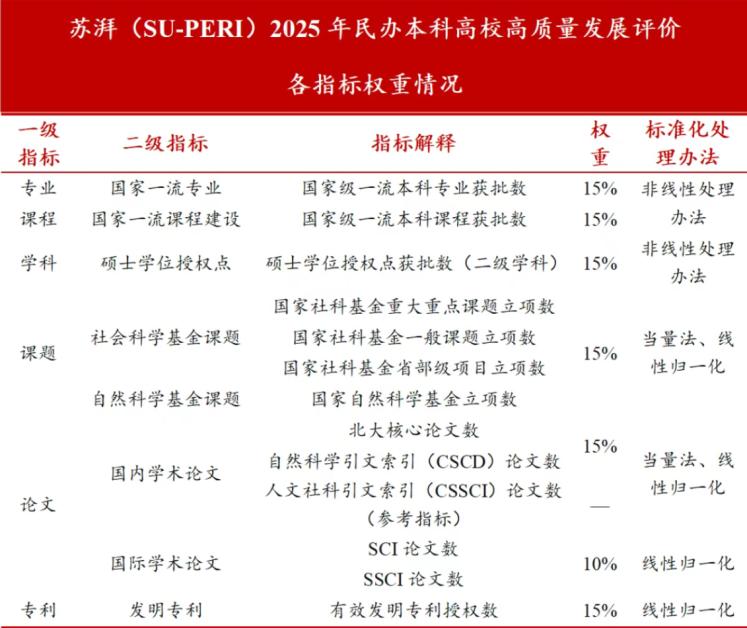 蘇州大學(xué)民辦教育研究中心(SU-PERI)是國(guó)內(nèi)唯一由“雙一流”高校設(shè)立的民辦教育研究機(jī)構(gòu),是“中國(guó)教育智庫(kù)榜單”(CETTE)中唯一上榜的民辦教育智庫(kù)。中心致力于診斷我國(guó)民辦本科高校發(fā)展中的問(wèn)題,探索高質(zhì)量發(fā)展路徑,聯(lián)合國(guó)內(nèi)多位學(xué)者,從教學(xué)、科研、社會(huì)服務(wù)等若干維度,對(duì)我國(guó)民辦本科高校進(jìn)行綜合評(píng)價(jià),研制了“蘇湃(SU-PERI)2025年民辦本科高校高質(zhì)量發(fā)展評(píng)價(jià)”。課題組成員包括:蘇州大學(xué)民辦教育研究中心主任王一濤教授,浙江大學(xué)國(guó)家制度研究院特聘研究員、無(wú)錫太湖學(xué)院副校長(zhǎng)闕明坤研究員,中國(guó)高教學(xué)會(huì)常務(wù)理事、無(wú)錫太湖學(xué)院校長(zhǎng)金成研究員,鄭州科技學(xué)院副校長(zhǎng)劉亮軍教授,山東女子學(xué)院科研處副處長(zhǎng)石猛教授等。