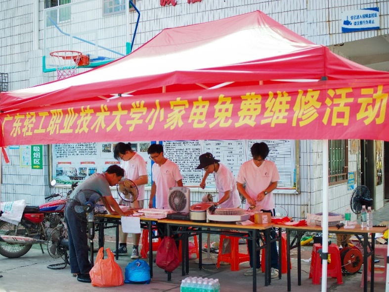 在永豐豐順廣場(chǎng),一個(gè)簡(jiǎn)易卻熱鬧的維修點(diǎn)格外引人注目。突擊隊(duì)員們熟練地拆解電器、檢測(cè)電路、更換零件,不一會(huì)兒就讓“罷工”的電風(fēng)扇重新轉(zhuǎn)動(dòng)起來。“這些大學(xué)生真厲害!”捧著修好的電飯煲,村民王伯連連稱贊,“去縣城修要花上百元,他們分文不收就解決了。”