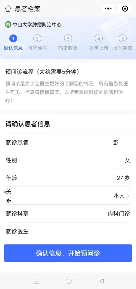 第一步:確認(rèn)信息后點(diǎn)擊開始預(yù)問診