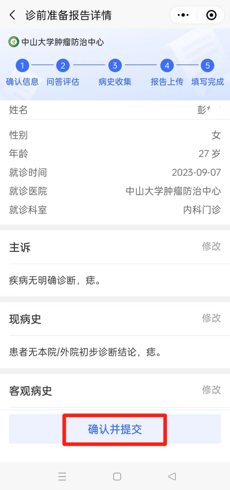 第五步:填寫完成后確認(rèn)信息并提交預(yù)問診內(nèi)容